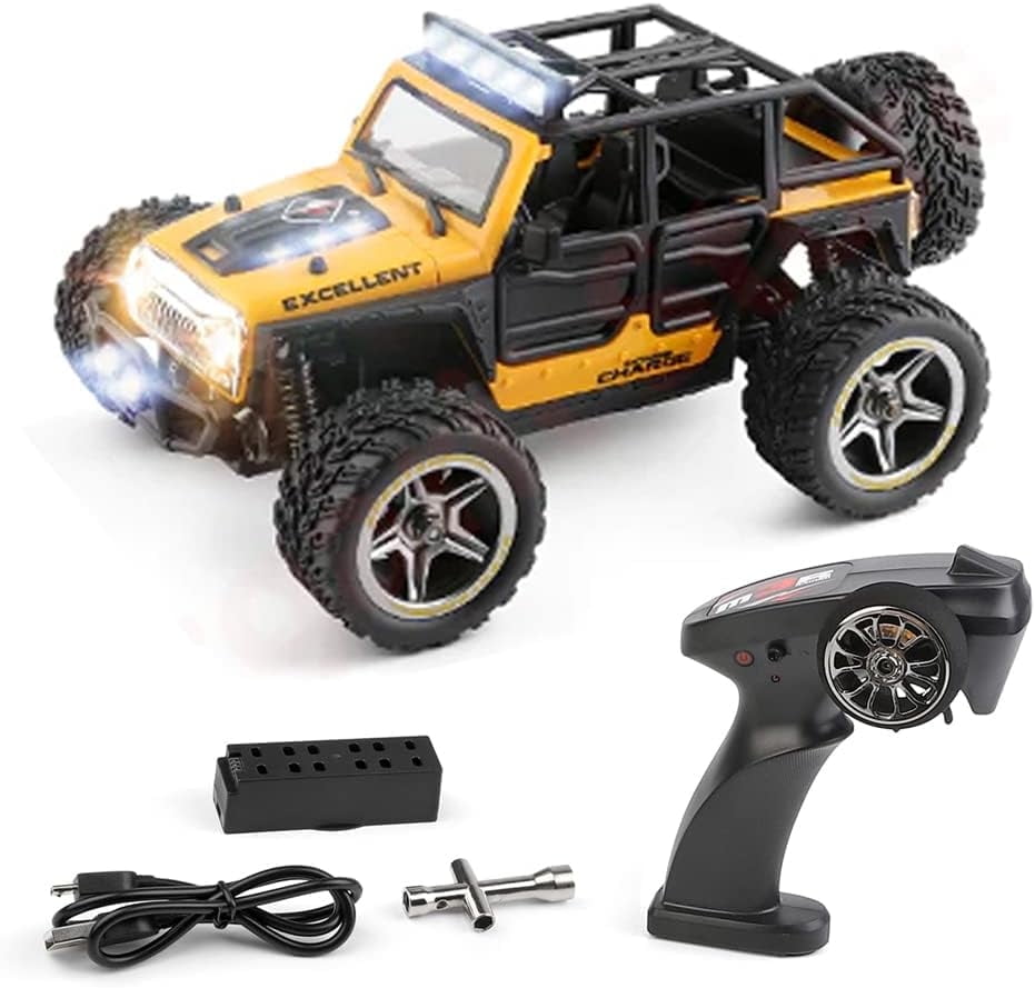 Unleash the power of adventure with the Bruce&Shark Wltoys 22201 1/22 Crawler RC Car, a meticulously crafted off-road machine that offers an exhilarating driving experience. Equipped with a robust 130 brushed motor, this 2WD crawler can reach speeds of up to 14 mph, providing you with the thrill of high-speed drifting on a variety of terrains. The vehicle’s sleek, full-scale simulation design includes realistic roof lights, fog lamps, and turn signals, making it not only an incredible performer but also a stunning visual experience. Its all-terrain TPR tires are engineered for excellent ground grip, ensuring that this crawler conquers sand, grass, rocks, and mud with ease. Whether you’re a beginner or a seasoned enthusiast, the 2.4GHz remote control system guarantees stable, interference-free action, even in competitive scenarios. With up to 16 minutes of continuous play on a single charge, this RC crawler is the ultimate choice for fun-filled outdoor escapades.