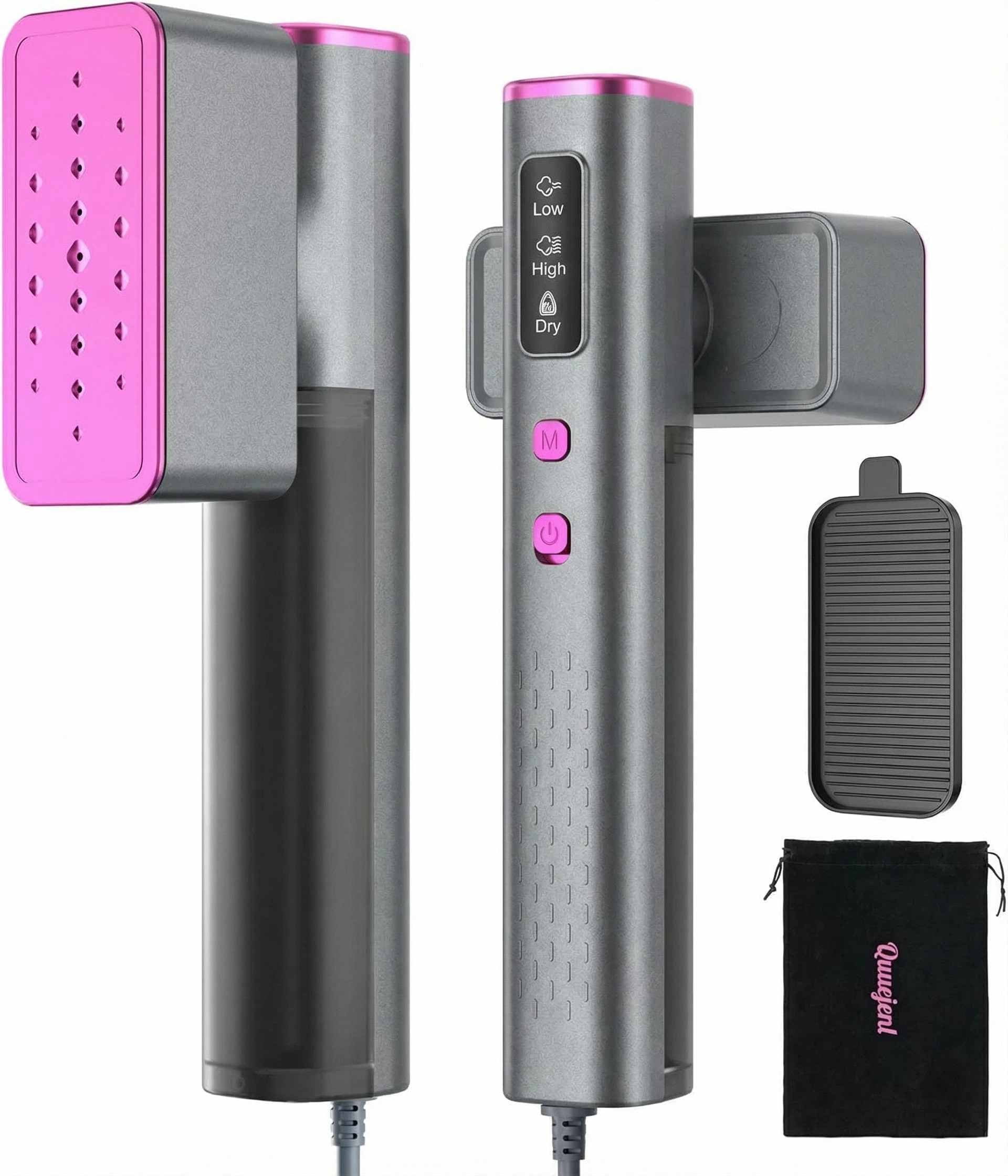 - 【Compact & Travel-Friendly | Easy to Pack】 Lightweight at 1.6 lb (about a750ml water bottle) with a compact 10.5 ×4.1 in body. The 360° rotating steam head saves space, and the included premium travel pouch makes packing simple.